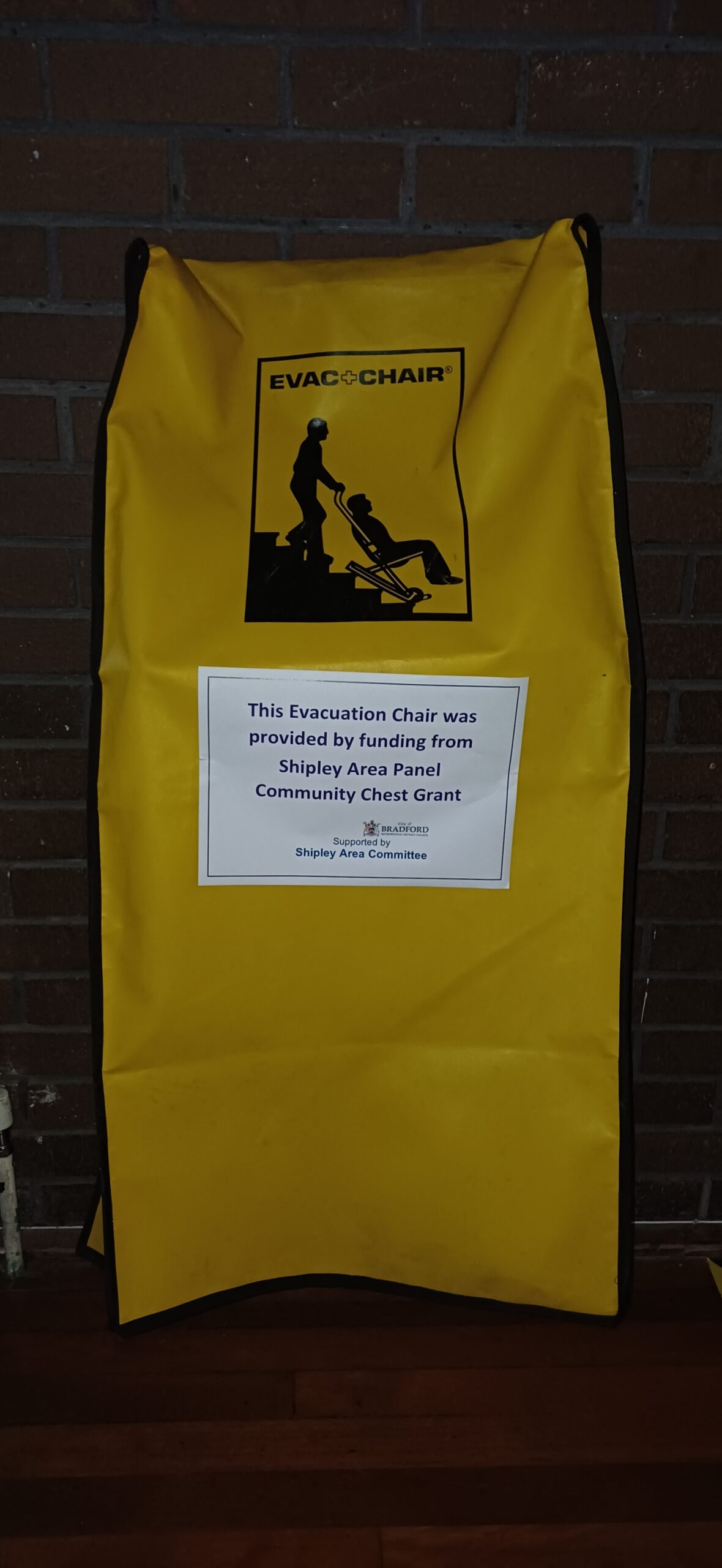 Thanks to funding from Shipley Area Panel, we were able to purchase evacuation chairs to enable wheelchair users or those with mobility issues to evacuate two of our fire exits which have stairs.
